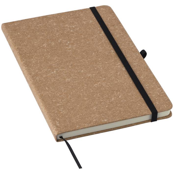 Notizbuch aus recyceltem Leder (A5) mit 200 linierten Seiten (70 g). Mit Gummiband zum Verschließen, einem Lesezeichen aus Band und einer Stiftschlaufe. Rückseite mit heißgeprägtem Logo aus recyceltem Leder.Mindestmenge