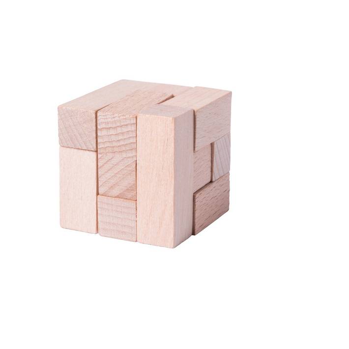 Geduldspielset mit 3 Geduldspielen aus Holz in einer Holzschachtel.