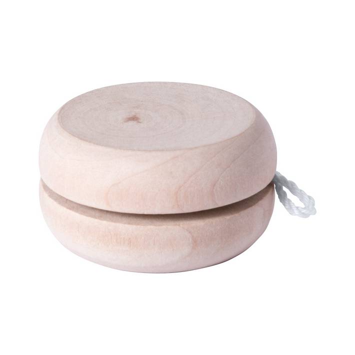 JoJo aus Holz mit weißer Schnur.