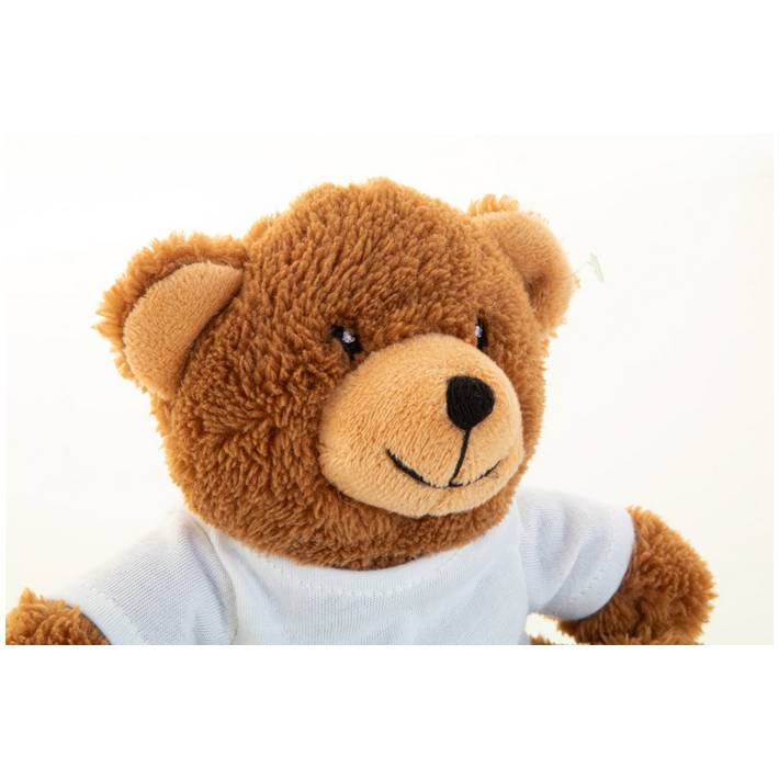 Plüsch-Teddybär aus RPET mit bedruckbarem T-Shirt aus RPET Polyester. Bei Bestellungen ohne Werbeanbringung wird der Bär ausgezogen geliefert.Mindestmenge