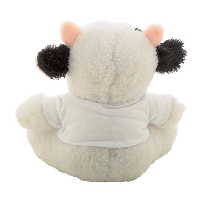 RPET-Plüschkuh mit bedruckbarem T-Shirt aus RPET-Polyester. Bestellungen ohne Druck werden mit abgenommenem T-Shirt geliefert.Mindestmenge