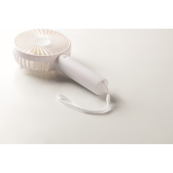 Kleiner Ventilator mit zusätzlicher Halterung zum Nutzen als Tischventilator. 3 Geschwindigkeitsstufen. Per USB wieder aufladbare 2000 mAh Batterie.Mindestmenge