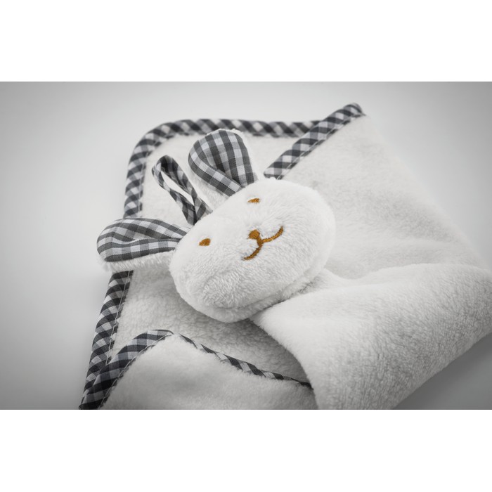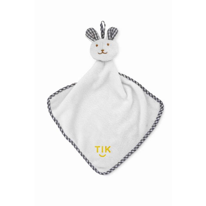 Schmusetuch für Babys mit kleinem Hasen. Samtiges Polyester 180g/m².