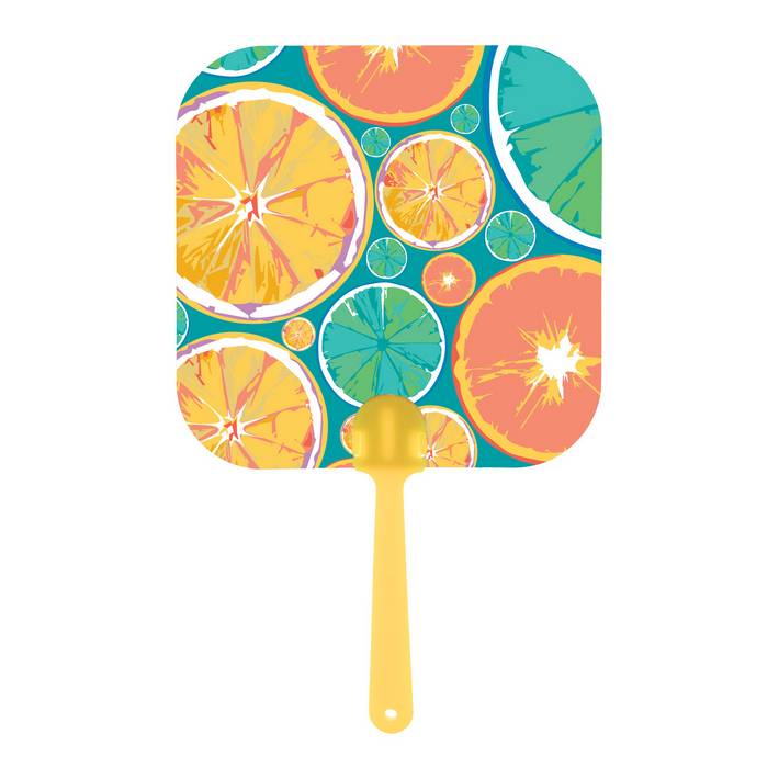 Fächer aus laminiertem Papier mit Kunststoffgriff und vollfarbigen Druck auf beiden Seiten. Der Preis ist inkl. Digitaldruck. Mindestmenge: 100 Stk.Lieferzeit (Tage)