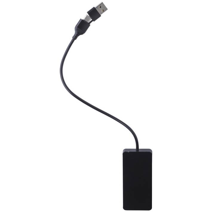 Aluminium USB Hub with 3 ports. Two USB A, one USB C port. Recycled logo engraved on the front.
