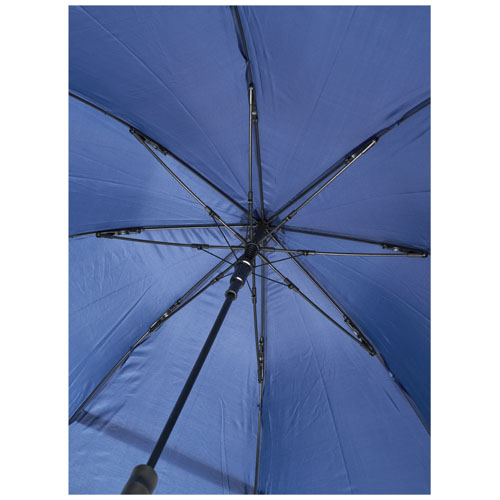 Bella 23" auto open windproof umbrella. Automatically opening umbrella with a polyester canopy. It has a sturdy metal shaft, a patented high quality full fiberglass frame, offering maximum flexibility in windy conditions. Straight plastic handle, tips and top. Available in a wide variety of contemporary colours and has a large decoration area. Polyester.Minimum quantity: