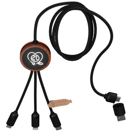 SCX.design C37 5-in-1 rPET light-up logo charging cable with round wooden casing