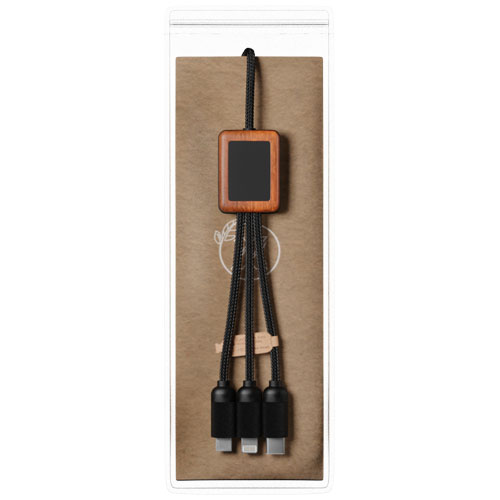SCX.design C38 5-in-1 rPET light-up logo charging cable with squared wooden casing