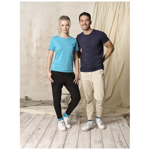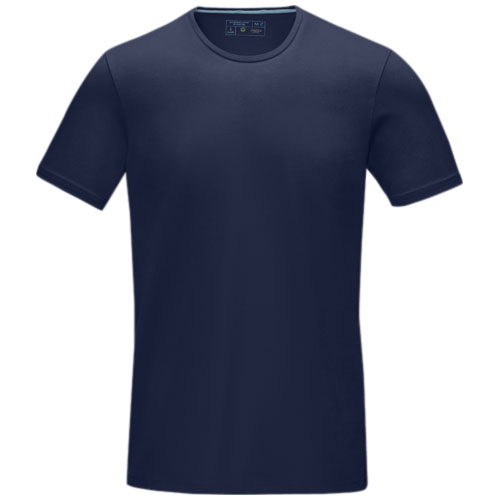 Sustainable promotional apparel. Self fabric collar. Crew neck. Stretch fabric. Double needle stitching detail. Bi-coloured branded shoulder to shoulder tape. Heat transfer main label for tagless comfort.Minimum quantity: