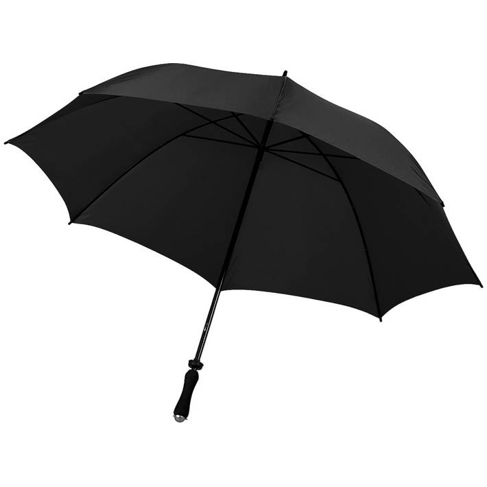 Polyester (210D) golf umbrella with eight panels. Metal frame and EVA foam handle. Including sleeve with carry strap.