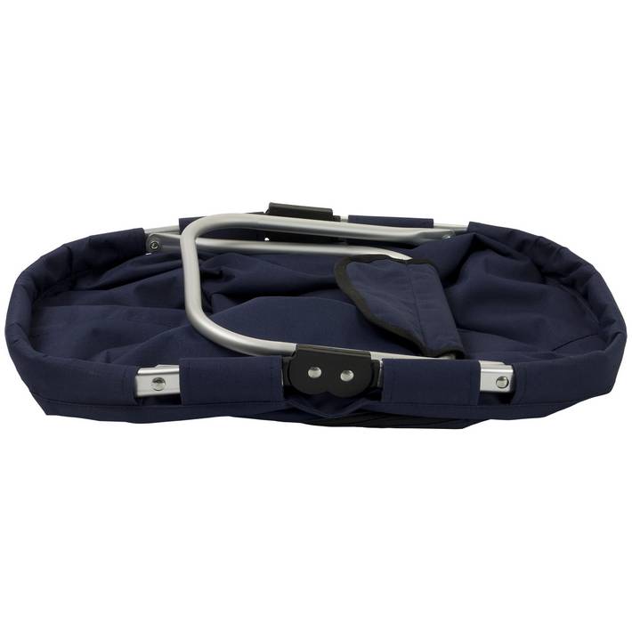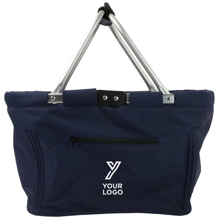 Polyester (600D) foldable shopping bag with zippered side pocket and aluminium frame.