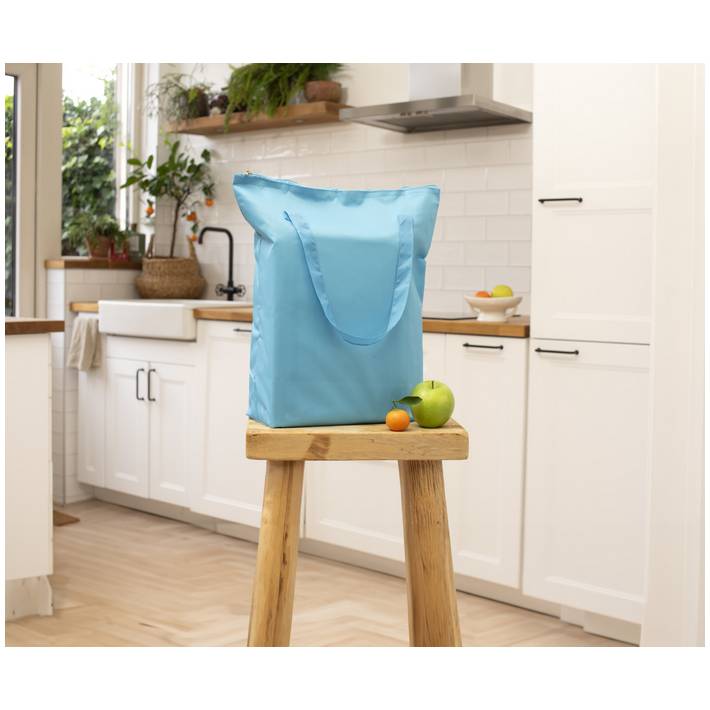 Polyester (210T), foldable cooler bag with aluminium foil interior. Capacity: 13 liters.