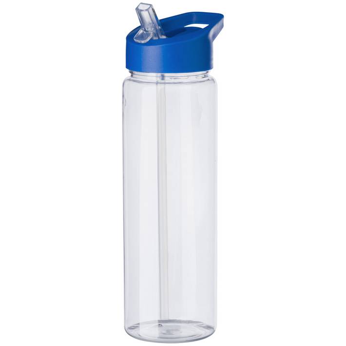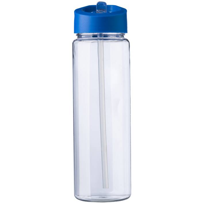 RPET drinking bottle (750 ml) with foldable straw in lid.