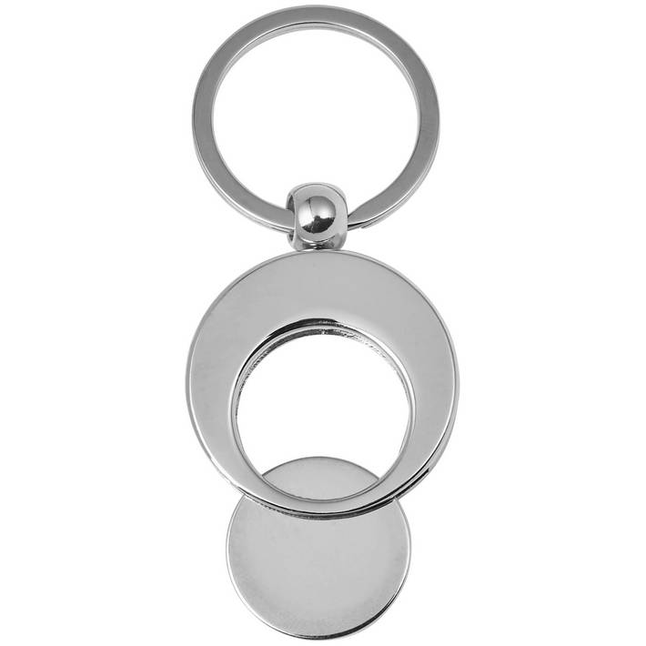 Metal key holder including shopping cart coin. The key ring is extra-large. Individually packaged in polybag.