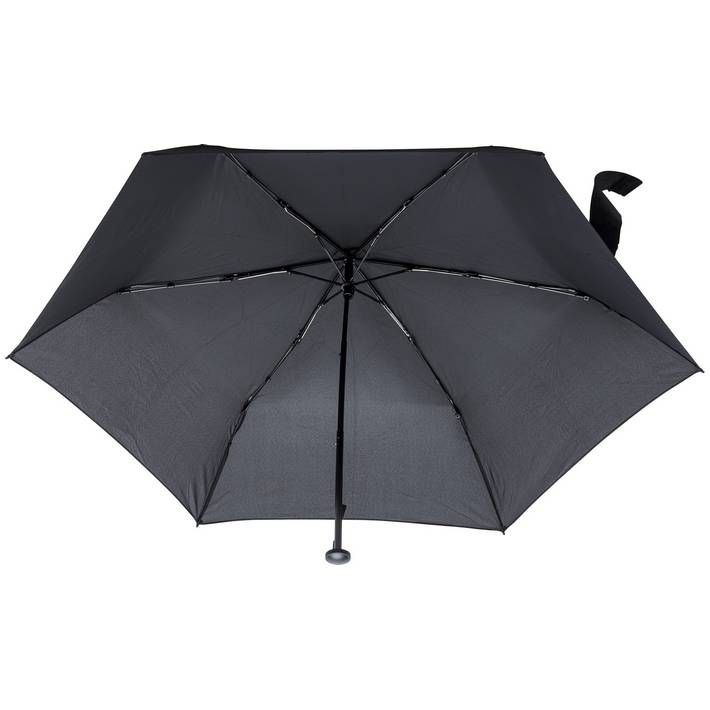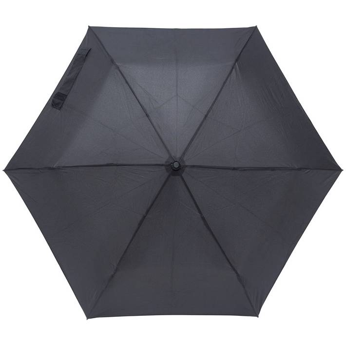 Pongee (190T) foldable umbrella with six panels. Metal shaft, ribs and handle. Including nylon sleeve.