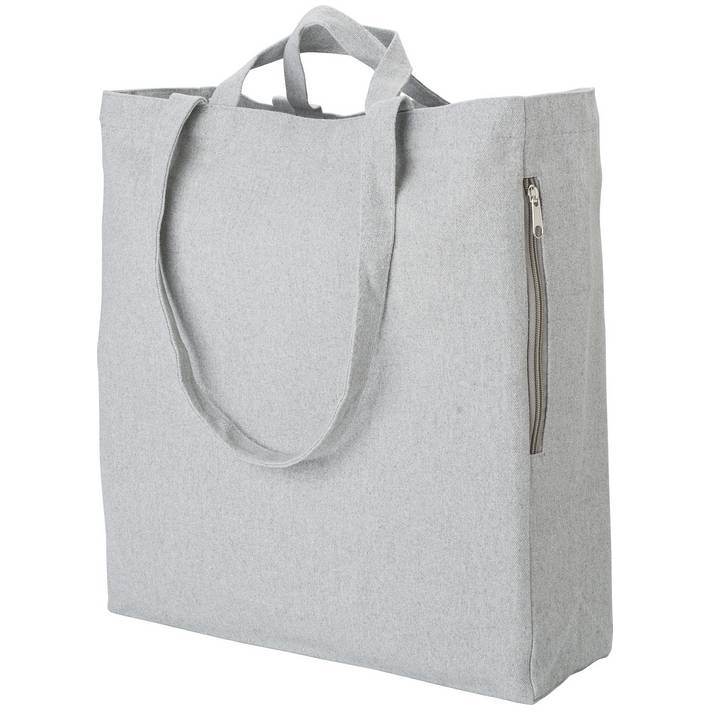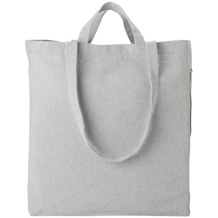 Recycled cotton (350 g/m²) shopping bag with short and long handles. Pocket with zipper on the side.