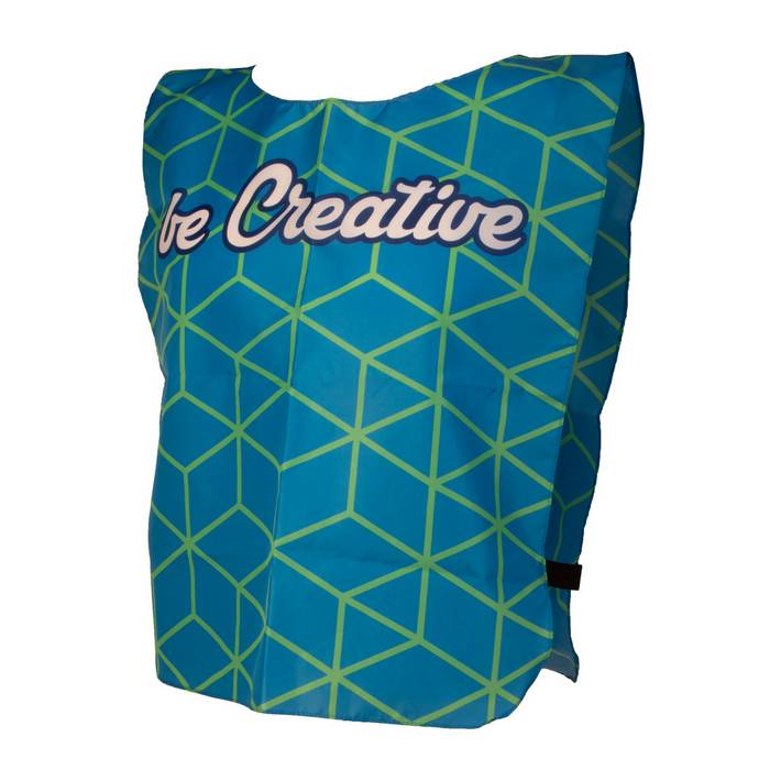 Custom made, 190T RPET polyester sport vest for adults. With all over sublimation printed graphics and distinctive RPET label. MOQ: 50 pcs.Minimum quantity: