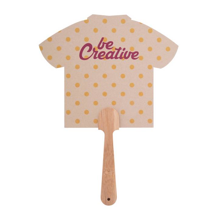 Custom made hand fan with bamboo handle and kraft paper. Digital printed with your graphic on both sides. MOQ: 100 pcs.