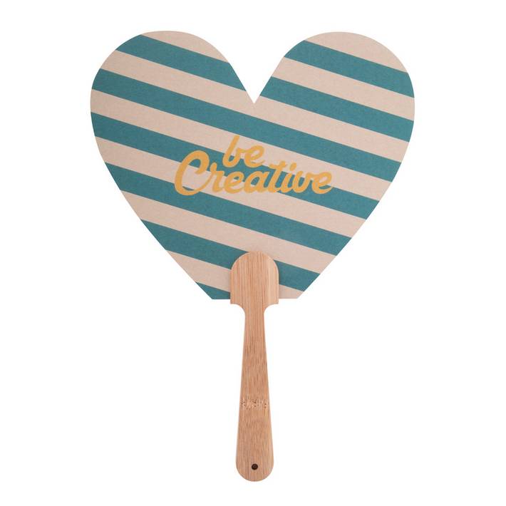 Custom made hand fan with bamboo handle and kraft paper. Digital printed with your graphic on both sides. MOQ: 100 pcs.