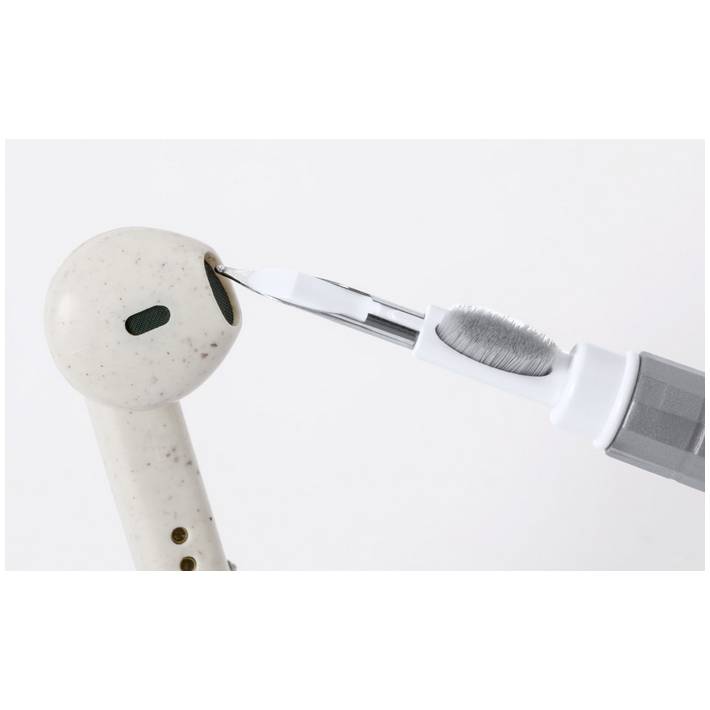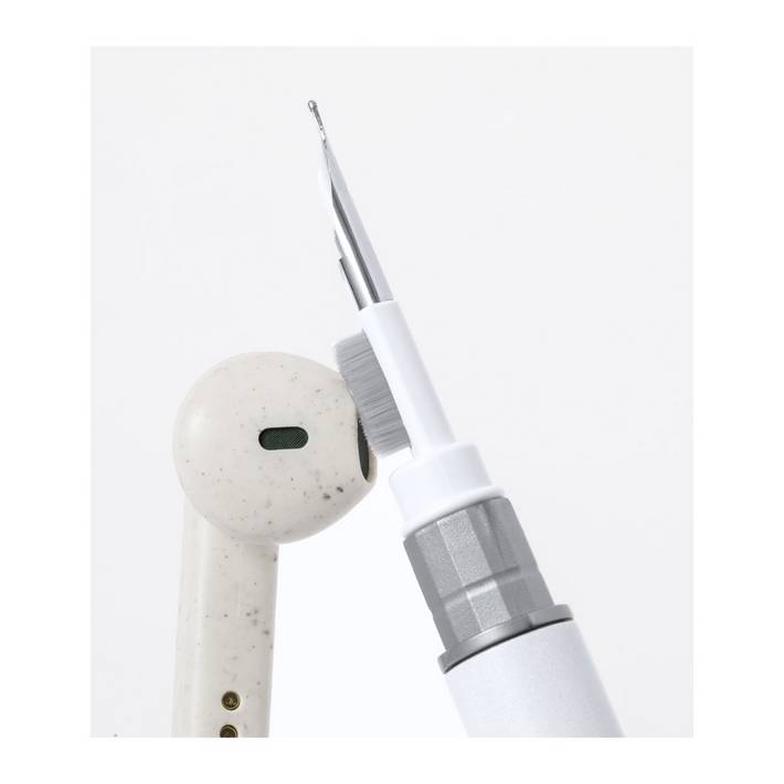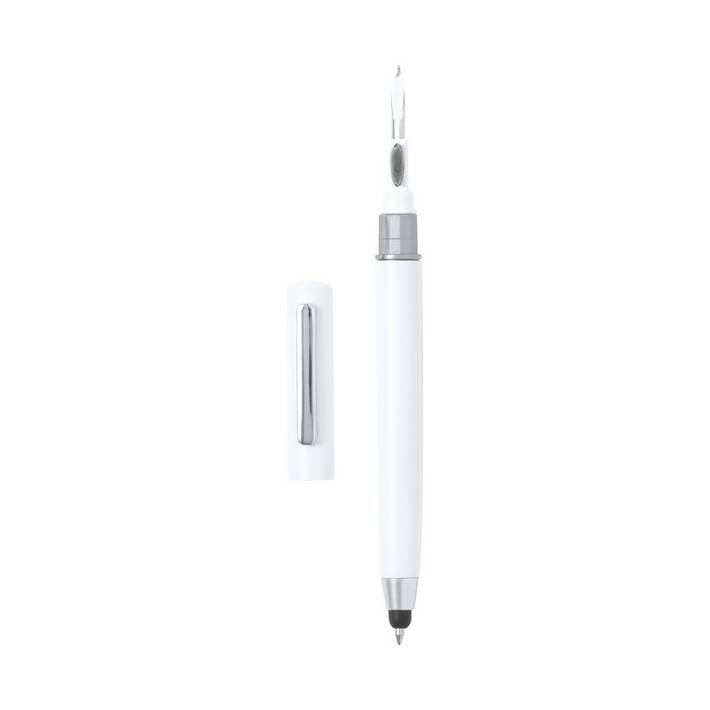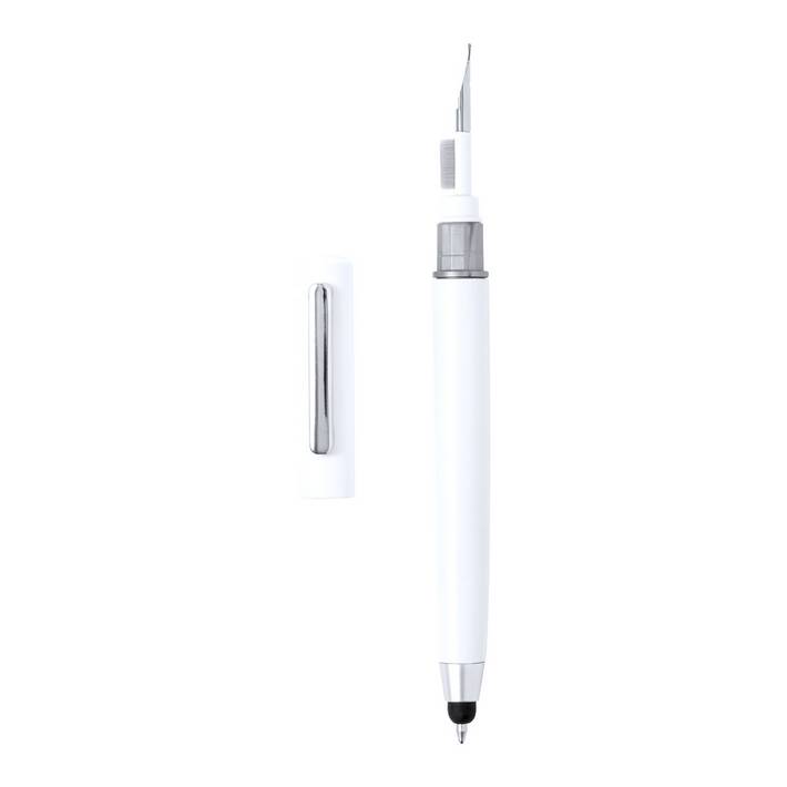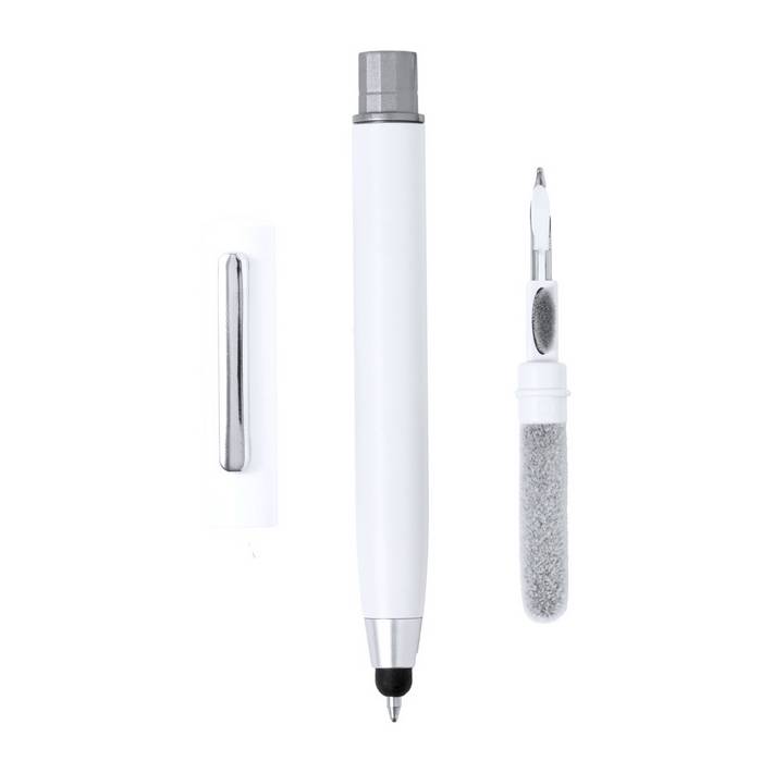 ABS plastic twist ballpoint and touch screen pen with built-in earphone cleaning kit. With blue refill.