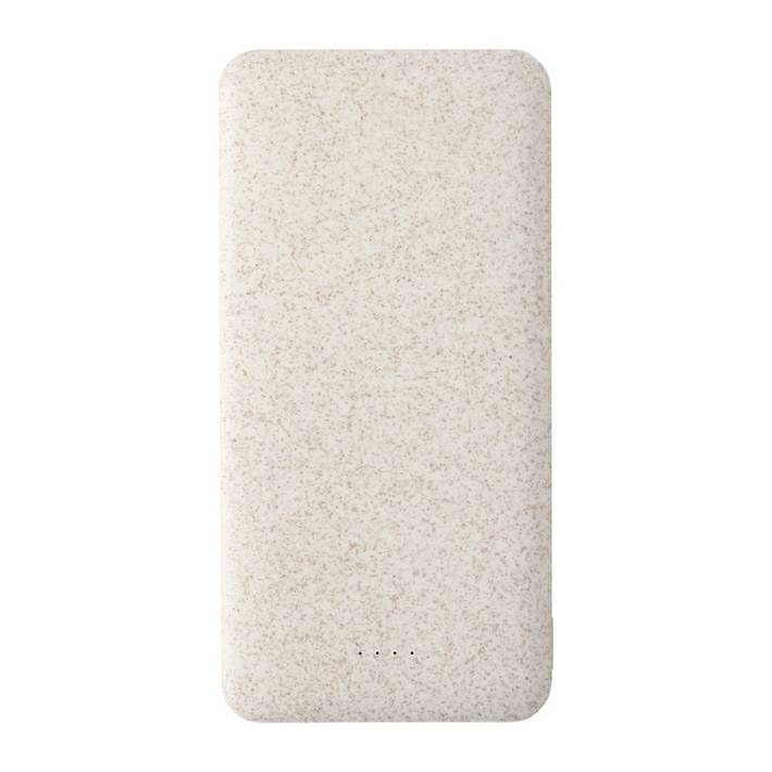 Ecological wheat straw plastic power bank with 20000 mAh battery. With 2 USB and 1 USB-C charger ports. USB-C input port. Including USB charger cable.Minimum quantity:
