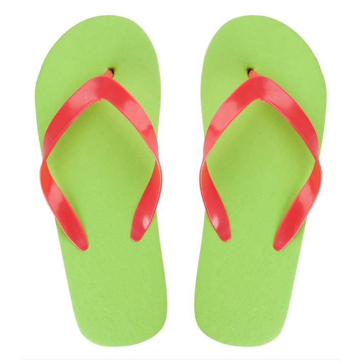 Customisable beach slippers, with PE sole and PVC straps. The product is assembled in the requested sole and strap colour combination. MOQ: 50 pairs/combination.Minimum quantity: