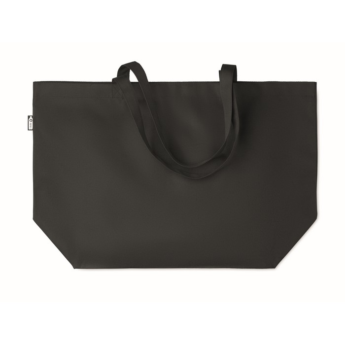 Large shopping bag or beach bag in 600D RPET with long handles and bottom gusset.