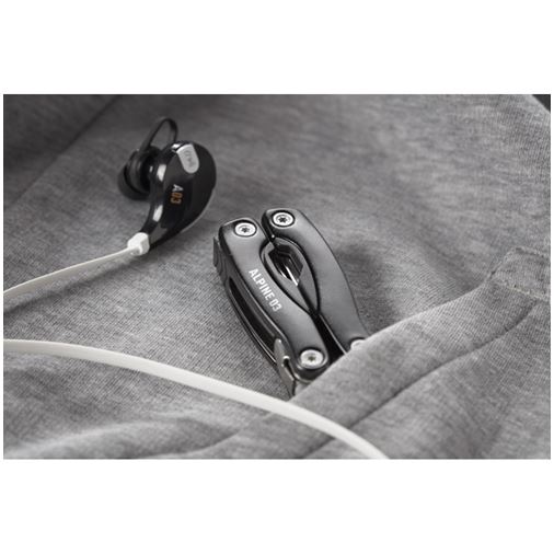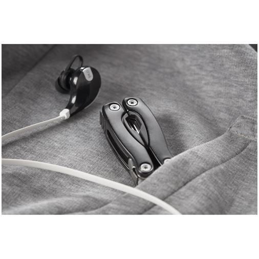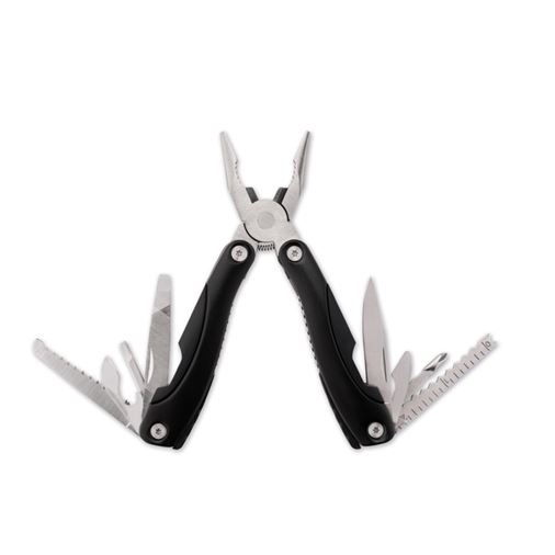 Foldable multi-tool knife in stainless steel. Includes 9 tool functions in ABS including 600D polyester pouch.