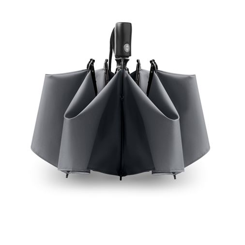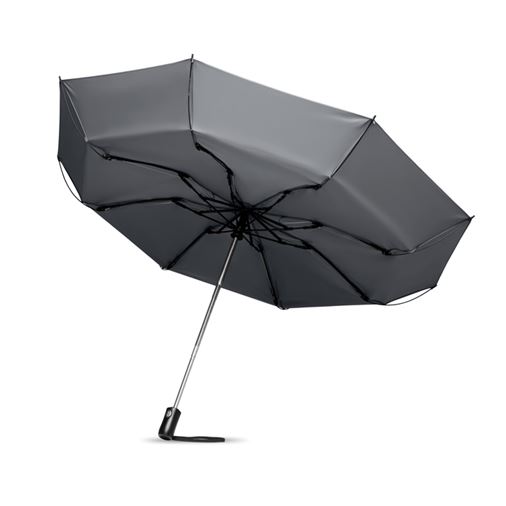 23 inch 3 fold auto open/close reversible umbrella in 190T pongee material chrome plating steel shaft. Fibre-glass rib and 1 part black plating inside frame. Black ABS handle with button. Includes matching pouch.Minimum quantity: