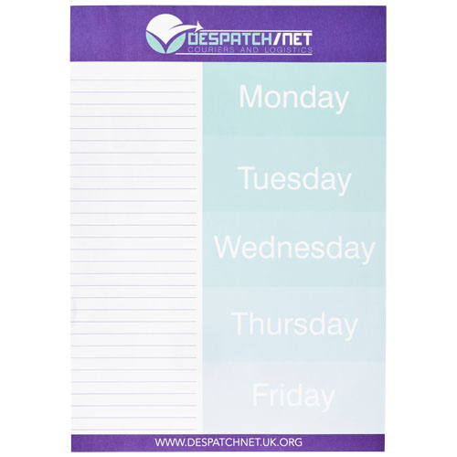 Blocco note Desk-Mate® di colore bianco e formato A4. La versione standard Include 50 fogli di carta da 80 g/m2. Stampa full color disponibile su ciascun foglio. Disponibile in 3 versioni (25/50/100 fogli).Quantità minima