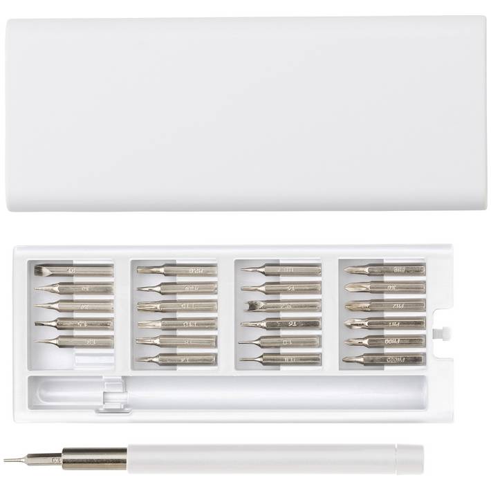Set cacciaviti in ABS e metallo, 24 punte di precisione, impugnatura del cacciavite magnetica per tenere le punte in posizione e rende facile la sostituzione, con una pressione sull'estremità il kit con le punte esce dalla custodiaQuantità minima