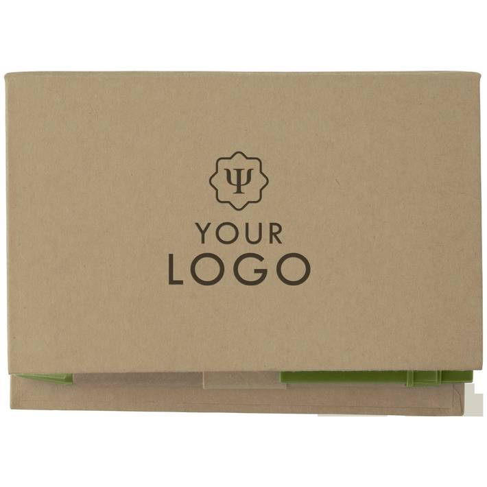 Set memo in cartone, composto da memo stick in vari colori, righello, penna a sfera con corpo e clip in cartone, refill bluQuantità minima