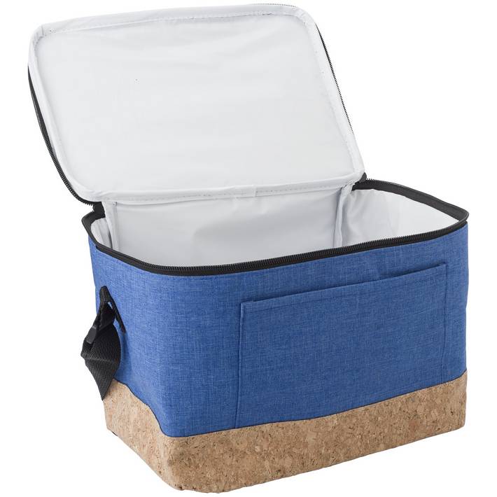 Borsa termica in poliestere 600 D, fondo in sughero, tasca frontale, scomparto principale con chiusura lampo, interno rivestito in EVA, può contenere sei lattine da 0,5 litri, tracolla regolabileQuantità minima
