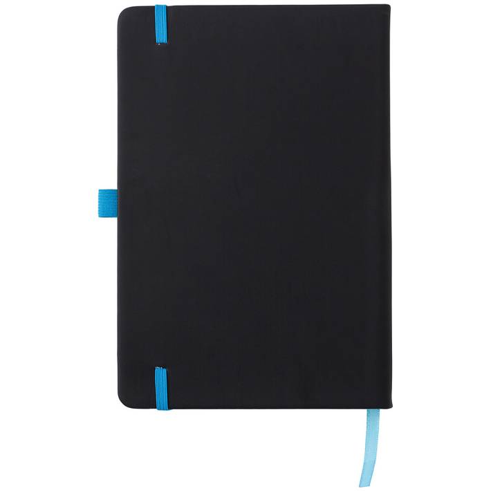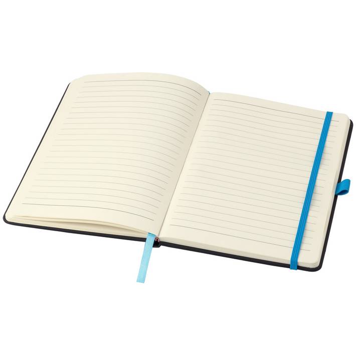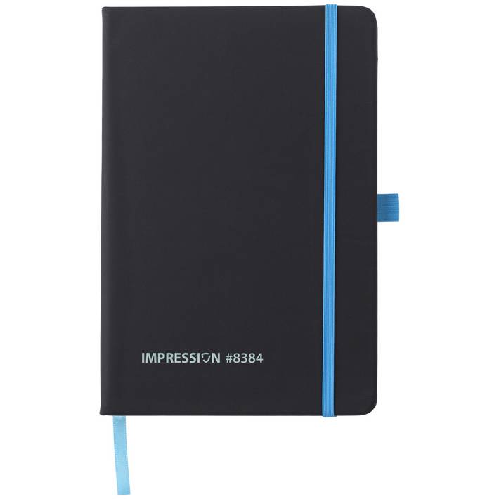 Taccuino formato +/- A5, include 96 fogli a righe, elastico colorato, passante per penna, con l'incisione laser sulla copertina il logo si mostrerà nel colore del dell'elastico, in PUQuantità minima