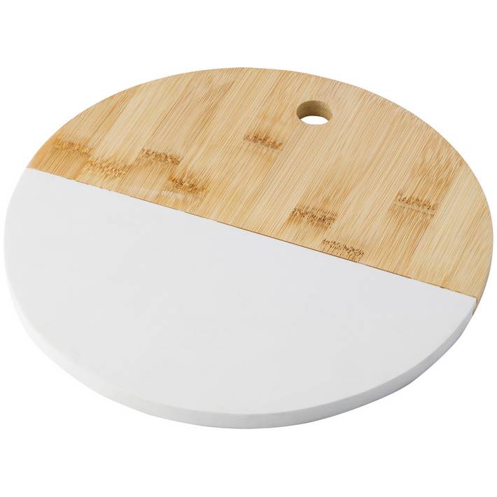 Tagliere in bambù e pietra con aspetto marmo, foro per il pollice