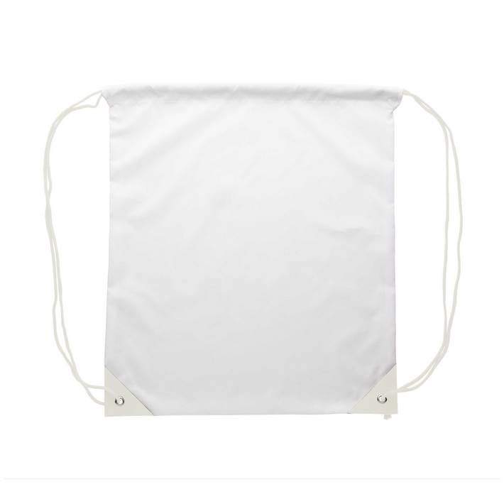 Sacca personalizzata con chiusura a coulisse, angoli rinforzati in pelle PU e cordini in tinta, in poliestere 190T. Con grafica stampata in sublimazione su tutta la superficie. MOQ: 50 pezzi.Quantità minima