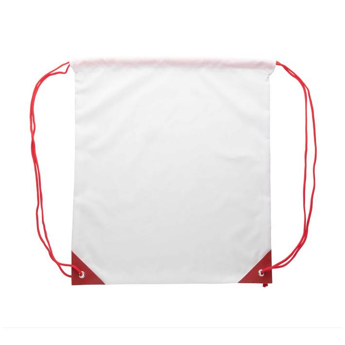 Sacca con chiusura a coulisse con angoli rinforzati in pelle PU e cordoncini in tinta, in poliestere 190T. Con grafica stampata in sublimazione su tutta la superficie. MOQ: 50 pezzi.Quantità minima