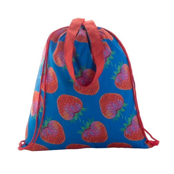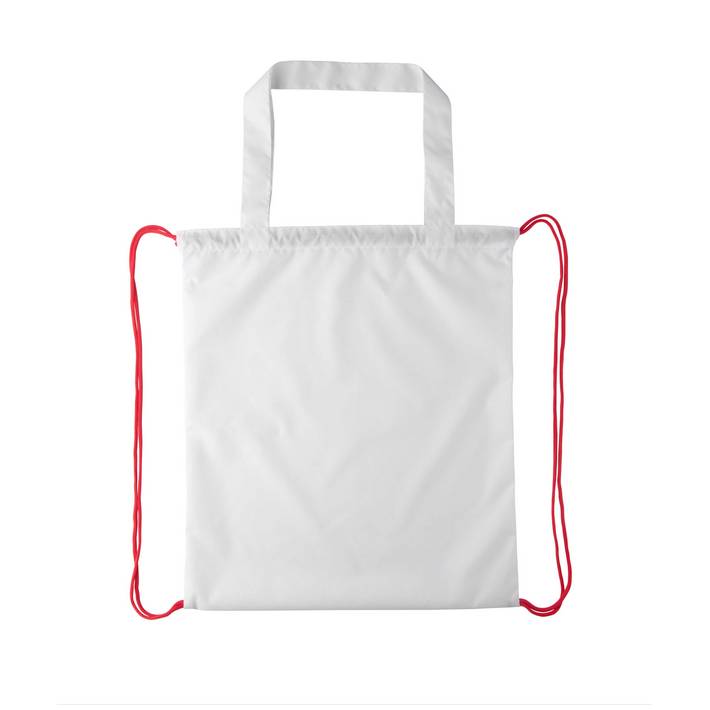 Sacca con chiusura a coulisse, cordoncini colorati e manici lunghi, in poliestere 190T. Può essere usata anche come borsa per la spesa. Con grafica stampata in sublimazione su tutta la superficie. MOQ: 50 pezzi.Quantità minima