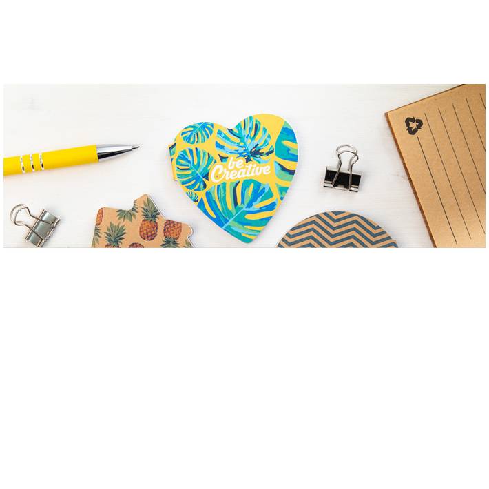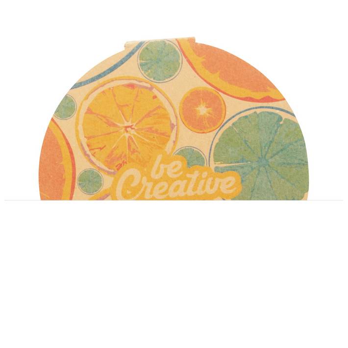 Custom made, recycled kraft paper covered round shaped sticky notepad. Includes 50 sheets of recycled paper sticky notes. Price includes full colour printed outside cover. MOQ: 100 pcs.Quantità minima