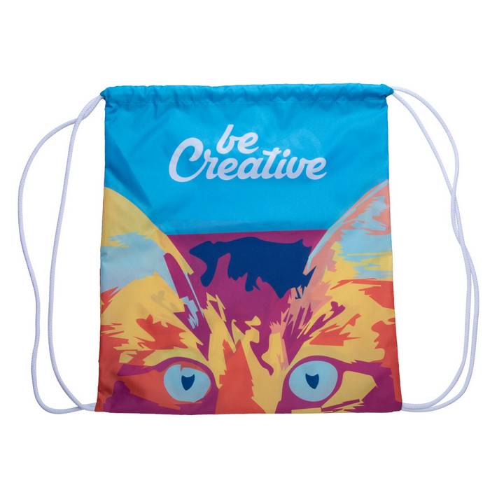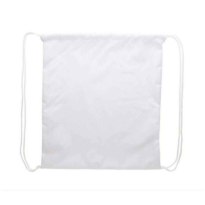 Sacca personalizzabile con chiusura a coulisse e cordoncini colorati, in poliestere 190T. Grafica stampata in sublimazione su tutta la superfice. MOQ: 50 pezzi.Quantità minima