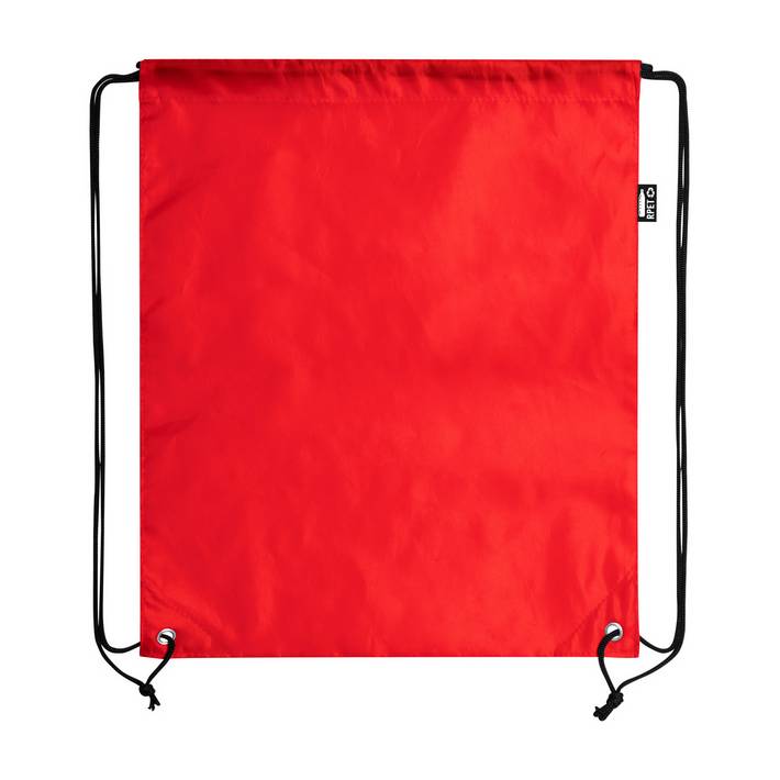 Sacca con coulisse in poliestere RPET, angoli rinforzati ed etichetta RPET