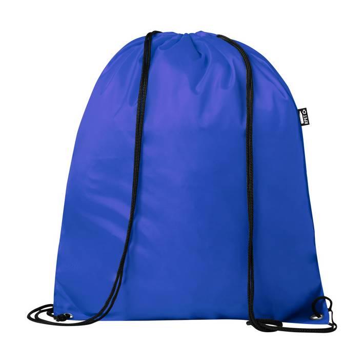 Sacca con coulisse in poliestere RPET, angoli rinforzati ed etichetta RPET