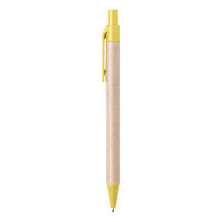 Penna a sfera con corpo in carta riciclata e parti in plastica ecologica di paglia di grano. Con refill blu.