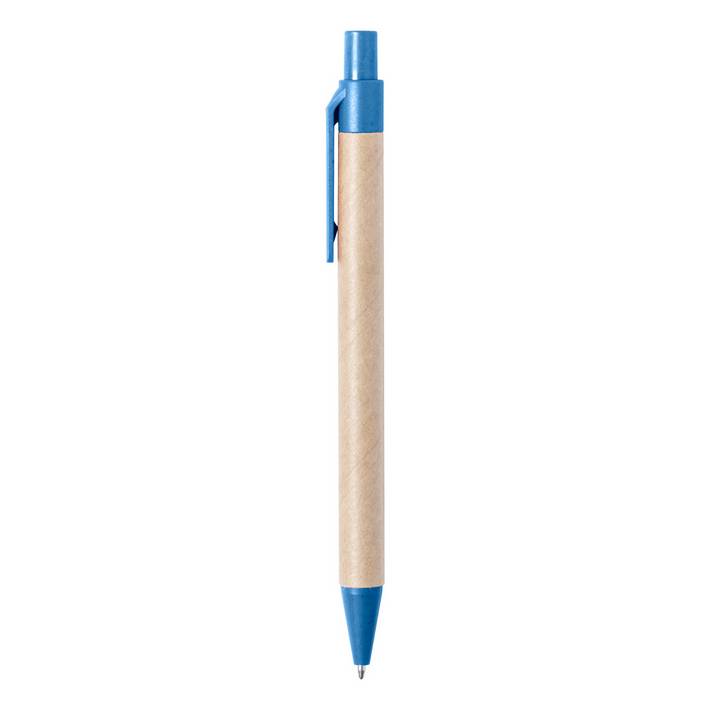 Penna a sfera con corpo in carta riciclata e parti in plastica ecologica di paglia di grano. Con refill blu.