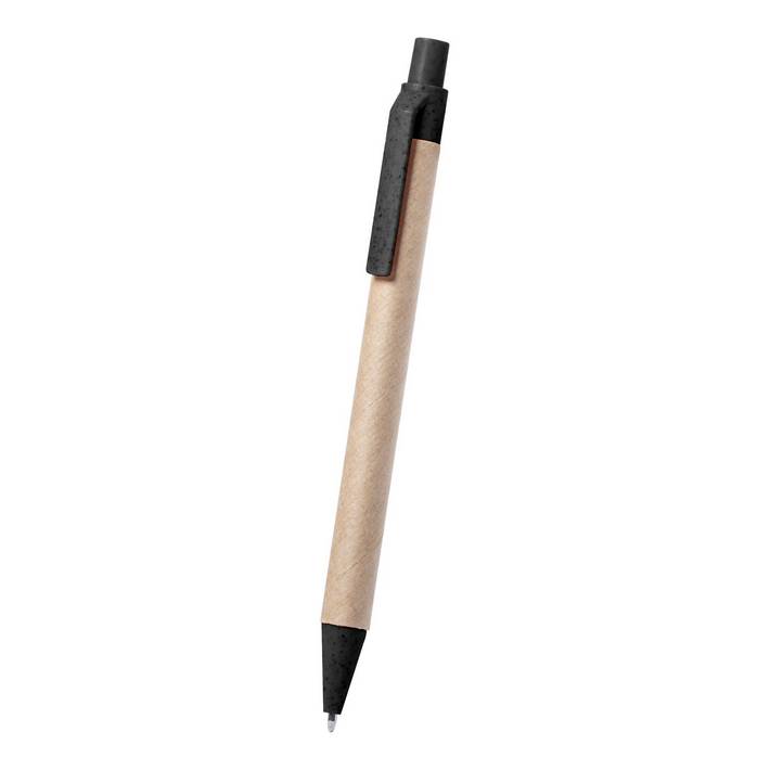 Penna a sfera con corpo in carta riciclata e parti in plastica ecologica di paglia di grano. Con refill blu.