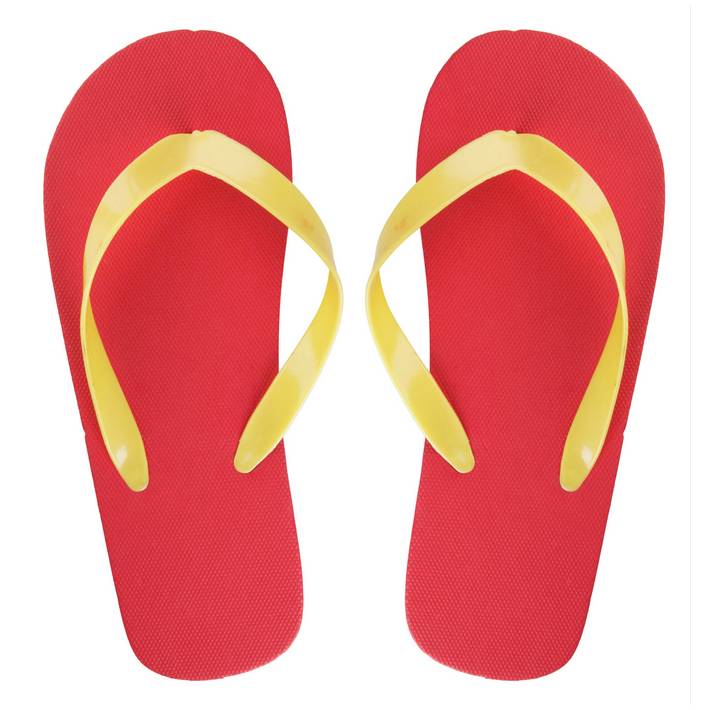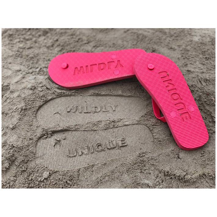 Ciabatta spiaggia personalizzabile con suola in PE ed infradito in PVC. Il prodotto viene assemblato nelle diverse combinazioni colore/suola/infradito. MOQ: 50 paia/combinazione.Quantità minima