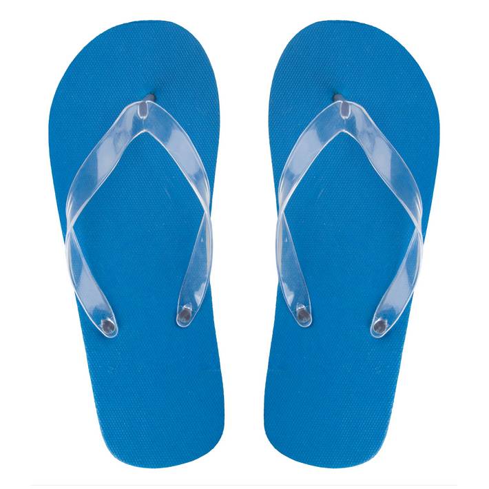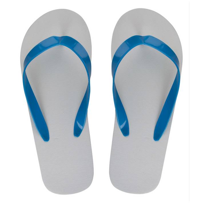 Ciabatta spiaggia personalizzabile con suola in PE ed infradito in PVC. Il prodotto viene assemblato nelle diverse combinazioni colore/suola/infradito. MOQ: 50 paia/combinazione.Quantità minima