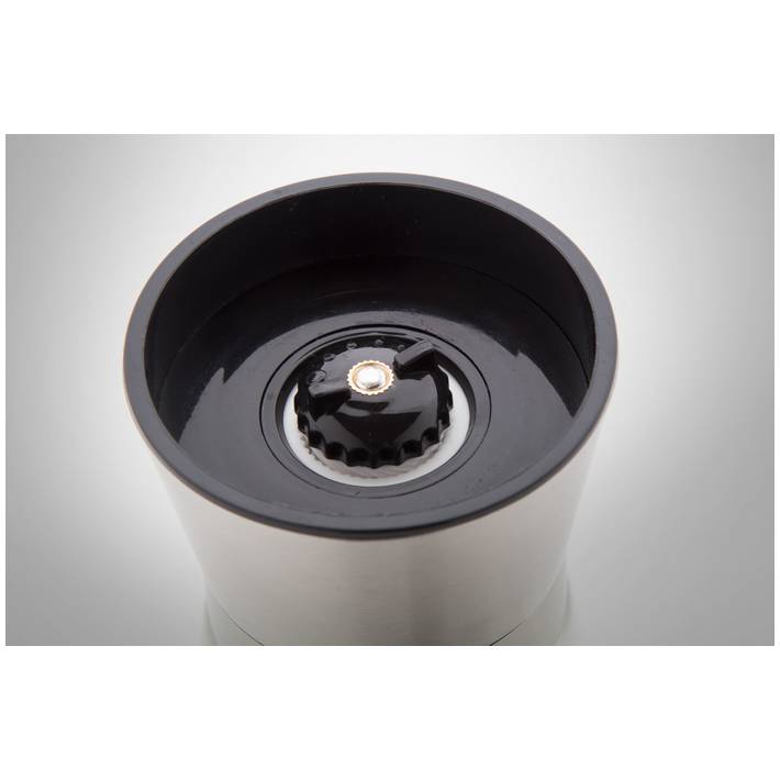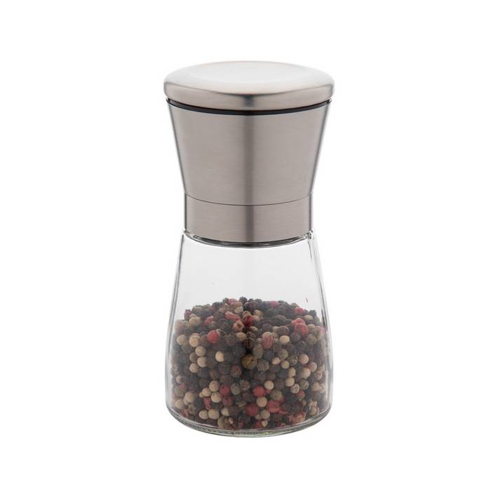 Stainless steel manual salt and pepper mill with ceramic grinder core and glass container, 180 ml.