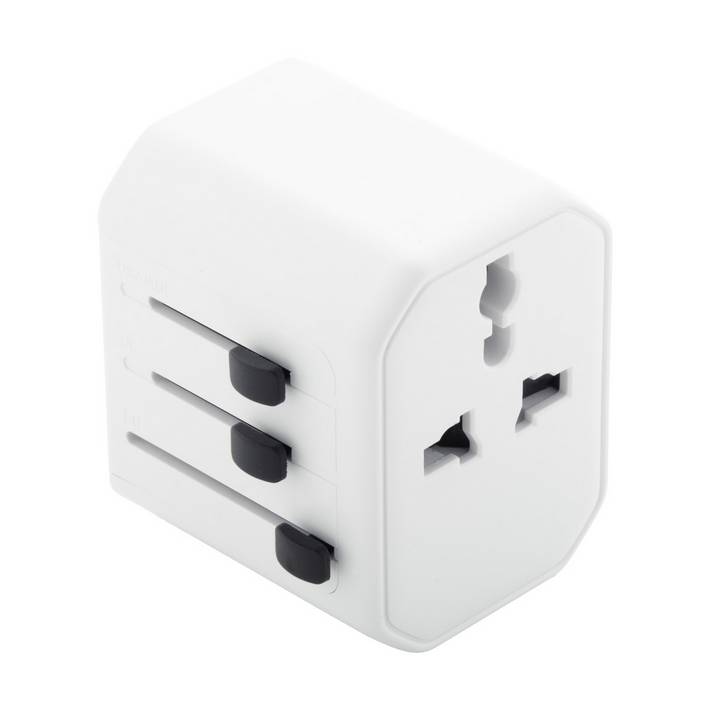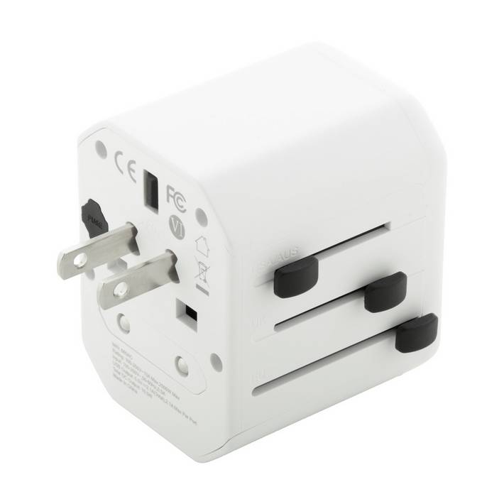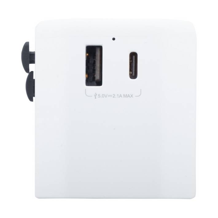 Adattatore universale da viaggio in plastica ABS, con spine a muro integrate per USA, Europa, Regno Unito e Australia, 1 porta USB e 1 porta USB-C.Quantità minima