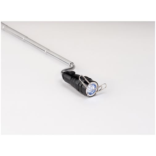 Torcia estensibile e flessibile con 3 luci LED e magnete all'estremità. Massima estensibilità 57cm. 4 batterie LR44 incluse.